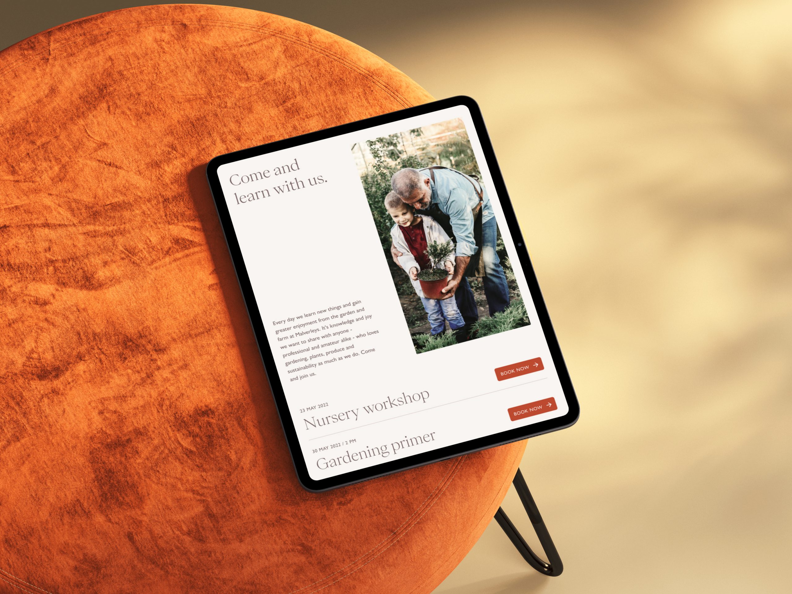 For Malverleys, a farm-to-table restaurant, gardens, and community space in Hampshire, I was tasked with developing a design system that reflected their mission to “Inform, Inspire and Delight” across multiple touchpoints. Working with the founder and team, I led discovery sessions to understand the diverse visitor journey—from casual café visitors to restaurant diners, garden enthusiasts, and workshop attendees.